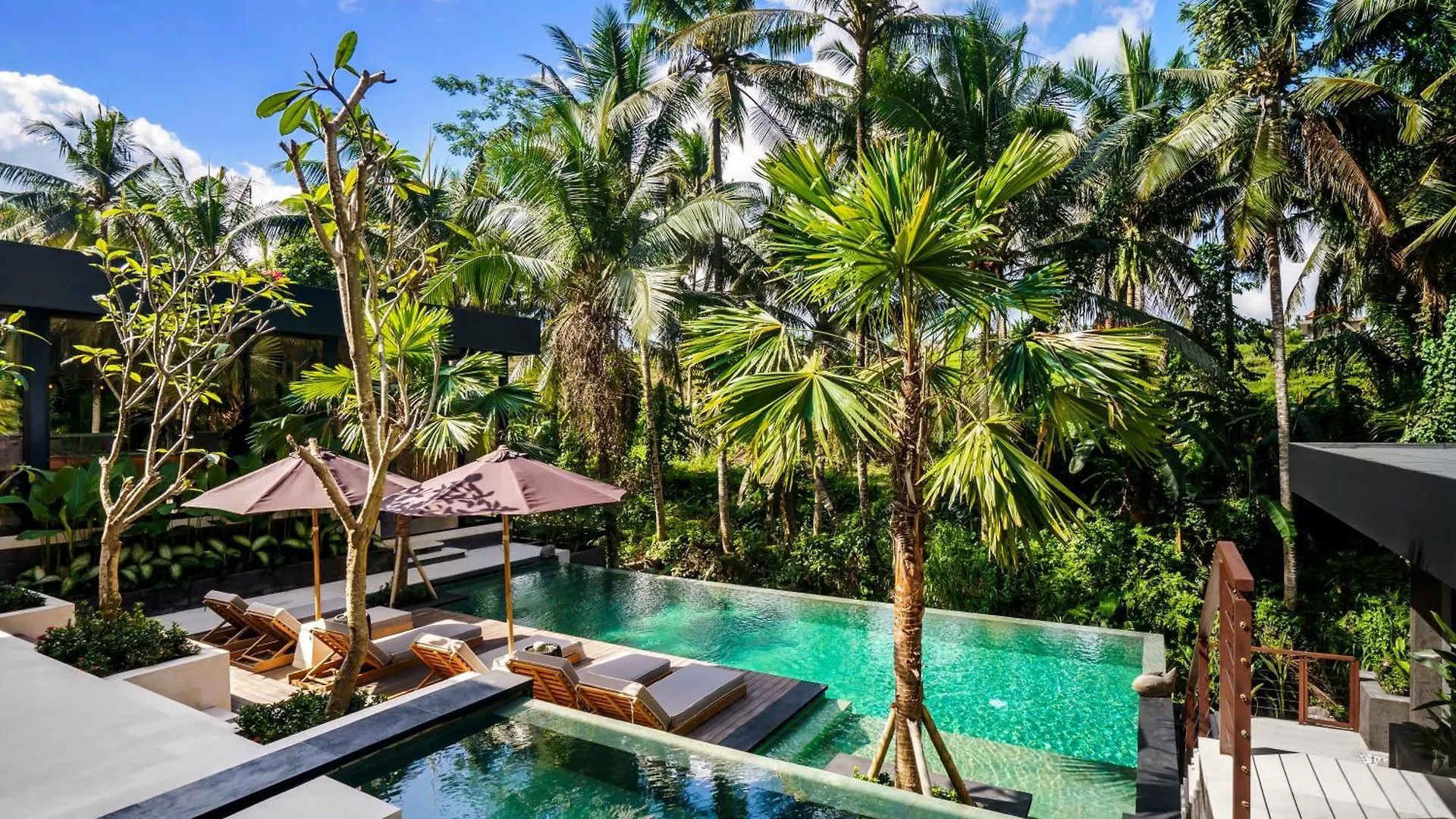 The 3-bathroom villa is 1.9 miles from the center of Ubud. The café USHA Cafe & Bakery is located only 5 minutes' stroll away. You can get to Monkey Forest Street about 10 minutes' drive away.